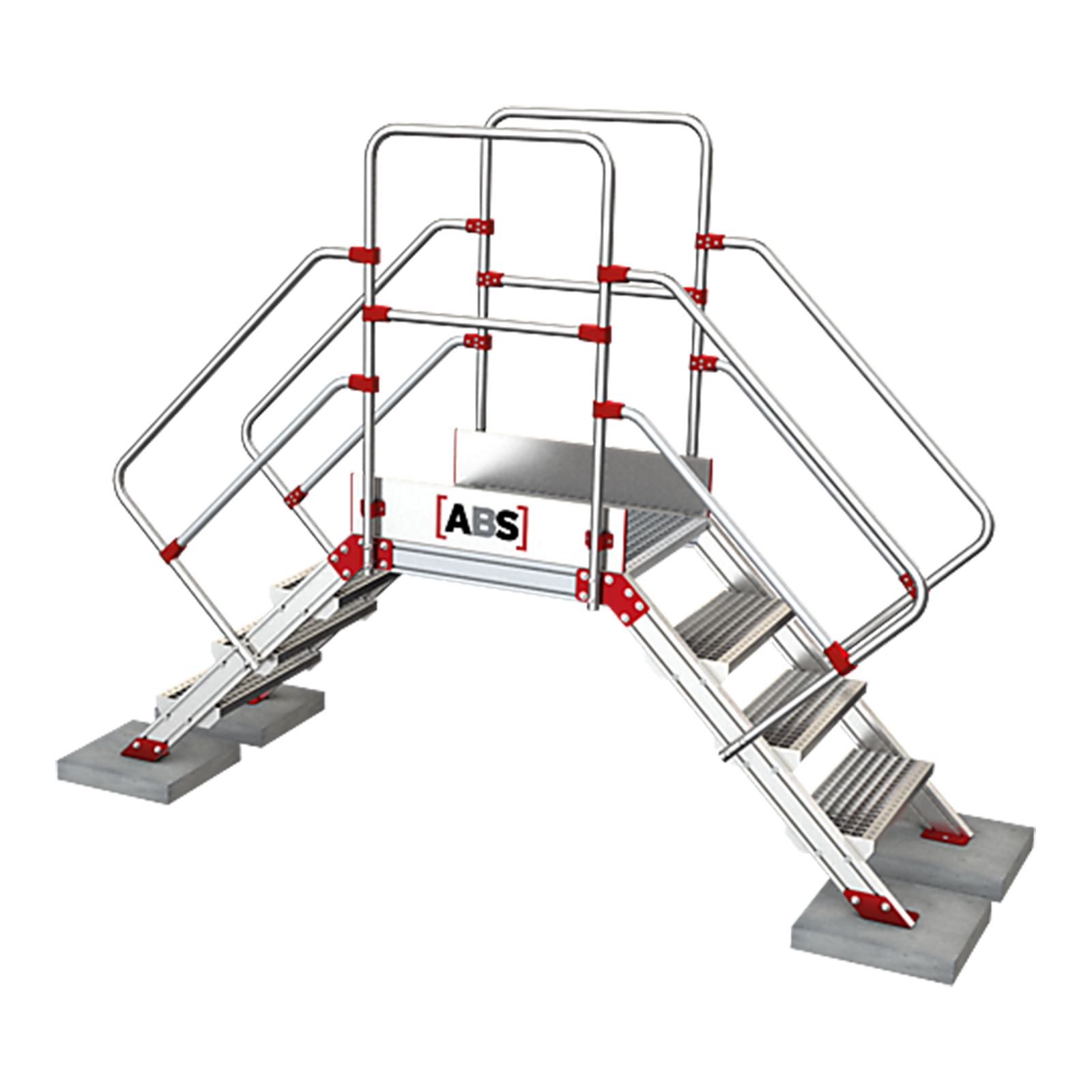 Weil ABS Überstiege auf einem Baukasten-System basieren, können Höhenunterschiede in einem Raster von jeweils 20 cm durch die Kombination verschiedener Elemente einfach ausgeglichen werden. Für ein Höchstmaß an Sicherheit verfügen die Tritte/Stufen und Podeste in allen Ausführungen über ein Aluminiumgitterrost der Rutschhemmungsklasse R 13. Sie sind damit trittsicher bis zu einem Neigungswinkel von mehr als 35°.